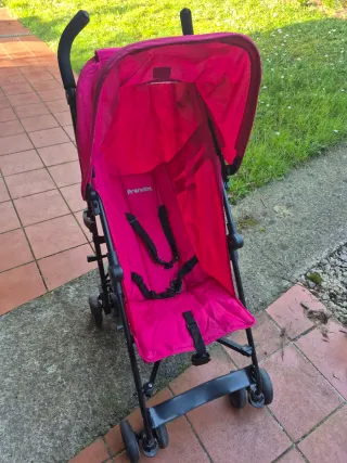 Silla de paseo ligera y práctica, en un llamativo color rosa. - Marca Prenatal. - Capota. - Arnés de seguridad. - Plegable. No se envia.