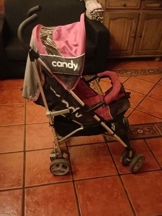 Silla de paseo tipo paraguas, marca Candy. Ideal para llevar a los más pequeños cómodamente. - Capota con ventana. - Asiento acolchado. - Ruedas delanteras giratorias.