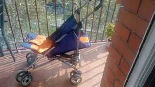 Silla de paseo ligera y práctica, ideal para desplazamientos. - Estructura de aluminio. - Asiento acolchado con arnés de seguridad. - Capota. - Ruedas para facilitar el movimiento - tres posiciones de reclinar - tengo plástico de agua , - ocupa muy poco