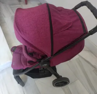 Silla de paseo Romer en color morado, con muy poco uso. - Asiento acolchado - Asiento reclinable tres posiciones. - Capota dos posiciones. - Arnés de seguridad. - Barra delantera. - Cesta de almacenamiento inferior. - Ruedas delanteras giratorias. - Plástico de lluvia. - Funda manillar. - soporte para lata o vaso.