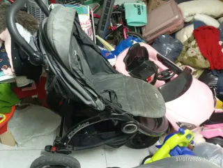 Se recoge en Tres Cantos. Comprado en Amazon hace un año. Es apto desde el Nacimiento hasta 25 kg. Se puede usar como carro de paseo o para correr. Se pliega rápidamente con tan solo una mano. El respaldo y el reposapiés de la silla se pueden ajustar para ofrecer la máxima comodidad, acostado o sentado. Ruedas grandes y giratorias para ser manejable sobre todo tipo de terreno. El manillar es también regulable.