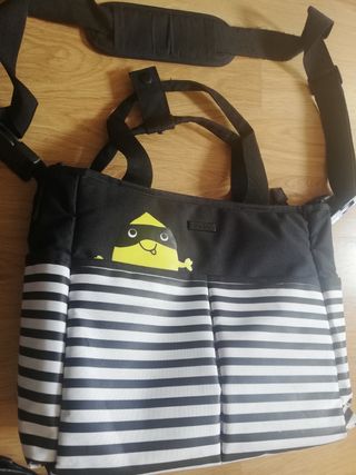 Bolso carro o silla paseo bebé marca Tuc Tuc. Está como nuevo, apenas utilizado en unas ocasiones. En el interior bolso tiene varios compartimentos y en parte delantera, trasera y laterales dispone de varios bolsillos. Muy completo. Tiene correa para llevar colgado o bien unos mosquetones velcro para poner en manillar carro. Regalo cambiador marca tuc tuc para llevar con bolso.