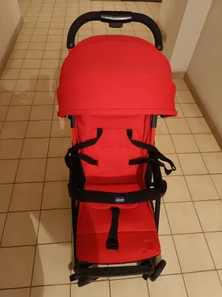 Silla de paseo en color rojo de la marca Chicco. Ideal para transportar a los más pequeños con comodidad. - Diseño plegable. - Arnés de seguridad. - Capota. - Plástico para lluvia - Barra frontal.