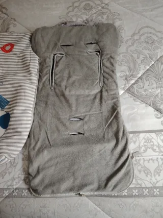 Saco para carro de paseo de la marca Bimbidreams. Es un accesorio práctico y cómodo para el bebé. - Forro interior de borreguito que puede quitarse cuando no hace tanto frío. - Capucha ajustable. - En la última foto se ve un poco descosida la cremallera que se puede coser.