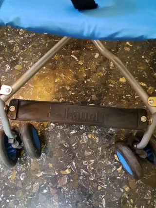 Silla de paseo ligera y plegable, ideal para transportar. - Uso un verano , se compró para un viaje - Color azul. - Estructura metálica. - Arnés de seguridad. - Simplemente limpiar textil.