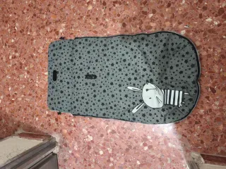 Saco para silla de paseo de bebé con un divertido diseño de estrellas y un conejito. - Color gris con estampado de estrellas negras. - Detalle de conejito blanco con rayas negras. - Cremallera lateral.