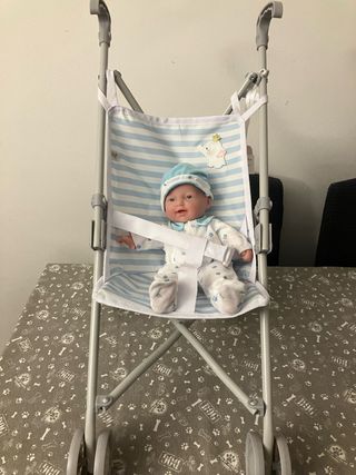 Muñeco bebé con silla de paseo