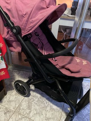 Cochecito de bebé de la marca Cybex en color rosa. - Capota amplia. - Arnés de seguridad de 5 puntos. - Barra delantera. - Diseño con mariposas bordadas.