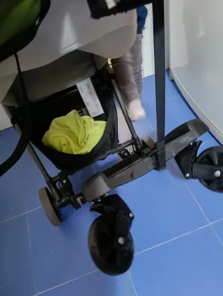 Accesorio para silla de paseo que permite que un niño mayor vaya de pie. - Se acopla fácilmente a la mayoría de carritos. - Rueda giratoria para mayor maniobrabilidad. - Plataforma antideslizante. Tengo también la silla para poner a la plataforma.