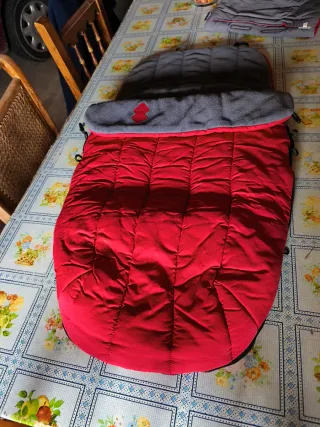 Saco para silla de bebé, ideal para mantener al pequeño abrigado durante los meses más fríos. Su diseño permite adaptarlo a la mayoría de las sillas de paseo. - Color rojo exterior. - Interior suave y cálido. - Aberturas para el arnés de seguridad.