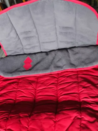 Saco de invierno para silla de paseo, ideal para mantener abrigado al bebé durante los meses más fríos. - Color fucsia. - Cremallera central. - Parte interior en color gris - los dientes del final de la cremallera están rotos pero cierra bien si no llegas