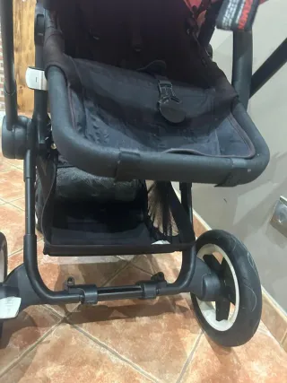 Silla de paseo en color negro, con detalles en marrón. Utilizada con un solo niño. Nos costó 350€. SÚPER PRÁCTICA Y MANEJABLE. - Capota. - Barra de seguridad. - Arnés de 5 puntos. - Asiento acolchado. - Ruedas delanteras giratorias.