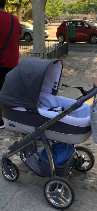 Carrito de bebé en color gris, ideal para paseos cómodos.También se hace silla.Incluye maxicosi. En perfecto estado, usado poquísimo. - Capazo amplio y acolchado. - Ruedas todoterreno. - Cesta de almacenaje inferior.