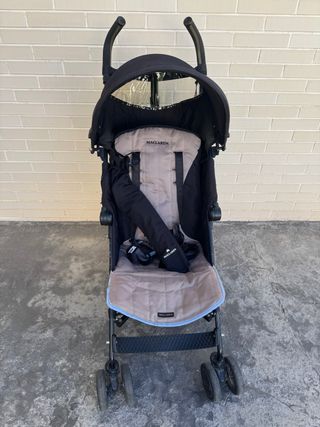 Silla de paseo de la marca Maclaren. Es ligera y fácil de manejar. - Color principal gris y negro. - Capota con ventana. - Arnés de seguridad. - Tiene plástico para la lluvia *Regalo sombrilla Maclaren Solo venta en persona