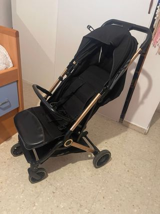 Sillita de paseo en color negro con detalles en dorado. - Estructura metálica. - Asiento acolchado. - Ruedas todoterreno