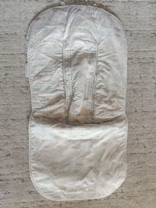 Saco de invierno acolchado para silla de paseo. - Color gris claro. - Forro interior suave. - Cremallera frontal para fácil acceso. - Aberturas para arnés de seguridad.