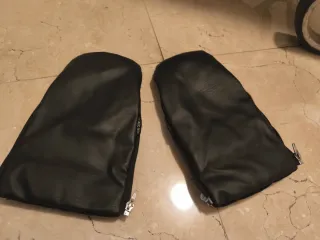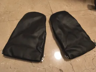 Manoplas negras para silla de paseo, ideales para mantener las manos calientes en invierno. - Material exterior de polipiel. - Cierre con cremallera. - Forro interior suave. Perfectas por dentro como por fuera
