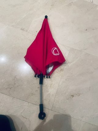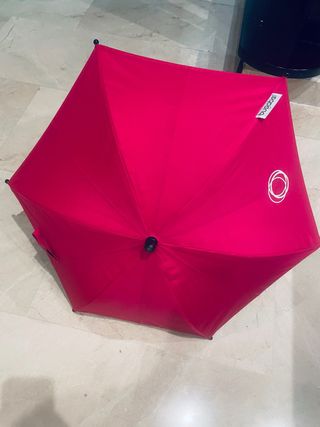 Sombrilla Bugaboo de color rosa fucsia. Usada dos veces. - Incluye el logo de la marca Bugaboo. - Diseño hexagonal.