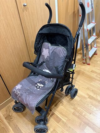 Silla de paseo prácticamente nueva, usada en total 15 días. Muy manejable, ligera y compacta, ideal para viajes. Respaldo reclinable y capota extensible. Cesta de almacenamiento inferior. Portabiberones, barra delantera, y reposapiés extraíbles. Mosquitera, burbuja para lluvia y esterilla sin estrenar.