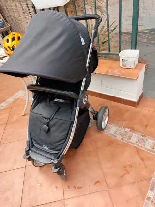 Silla de paseo con un diseño moderno y funcional. - Capota amplia para proteger del sol. - Asiento acolchado. - Barra de seguridad. - Arnés de 5 puntos. - Ruedas todoterreno. - Manillar ergonómico. -Recogida en domicilio.