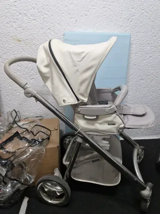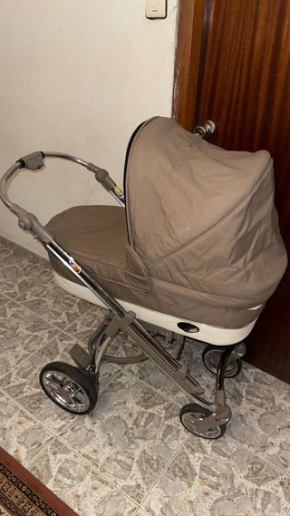 Conjunto de silla de paseo para bebé con capazo. Marca bebecar. Nuevo costó 914 euros. El capazo sin usar por la pandemia. - Estructura metálica. - Capazo con interior acolchado. - Silla con capota. - Ruedas delanteras giratorias.