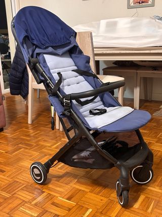 Silla de paseo ligera y manejable, ideal para el día a día. - Capota con visera. - Cesta de almacenamiento inferior. - Ruedas delanteras giratorias. - Arnés de 5 puntos y comodidad con su respaldo ajustable en 3 posiciones. - Pequeños arañazos propios del uso - Muy bien cuidada y limpia