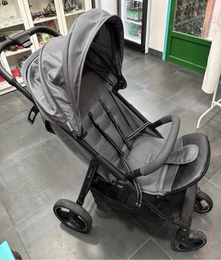 Silla de paseo doble de la marca Inglesina en color gris. Perfecta para llevar a dos niños cómodamente. - Diseño tandem. - Capotas independientes. - Arnés de seguridad de 5 puntos.