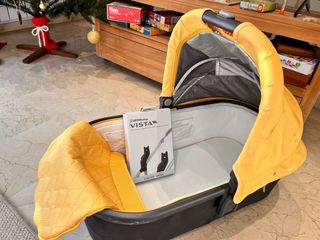 Capazo Uppababy Vista en color amarillo, ideal para tu bebé. Incluye un colchoncito añadido de alta calidad para mayor comodidad. - Color amarillo vibrante. - Colchón adicional incluido.