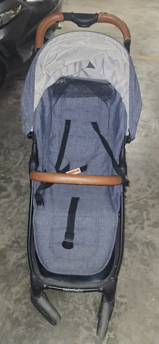 Silla de paseo de la marca Maclaren, ideal para transportar a bebés. - Color marrón oscuro. - Capota. - Arnés de seguridad. viene roto lo de apoyar los pies