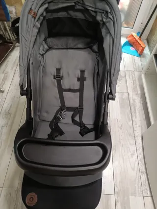 Silla de paseo para bebé con un diseño moderno y funcional. - Capota amplia para proteger del sol. - Asiento acolchado. - Bandeja frontal. - Arnés de seguridad.