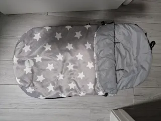 Saco universal para silla de bebé con un bonito estampado de estrellas grises y blancas. Es perfecto para mantener al pequeño abrigado y cómodo. - Diseño con estrellas blancas sobre fondo gris. - Compatible con la mayoría de sillas de paseo.