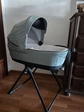 Capazo para silla de paseo Inglesina Aptica XT. Diseñado para ofrecer comodidad y seguridad. - Color gris claro. - Capota ajustable. - Interior acolchado. -Incluye trípode para usarlo como moisés. -Color Igloo Grey