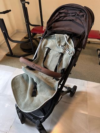 Silla de paseo con un diseño moderno y funcional. - Capota extensible. - Manillar y detalles en polipiel. - Cesta de almacenaje inferior. - Ruedas delanteras giratorias.