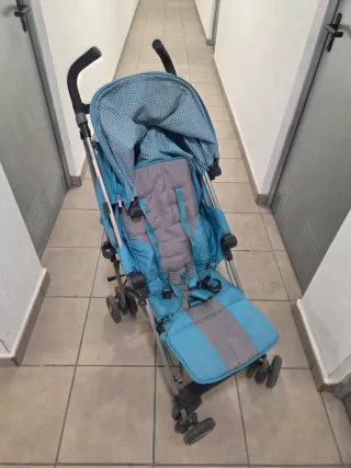 Silla de paseo de la marca Chicco, ideal para transportar a los más pequeños con comodidad. - Diseño plegable. - Arnés de seguridad. - Capota protectora. El mango derecho tiene deteriorada la goma Eva y puse cinta aislante pero igualmente se puese poner goma Eva nueva y está en perfecto estado .