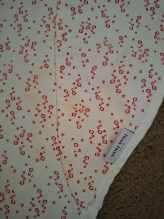Funda acolchada con estampado floral para silla de paseo Yoyo. Protege y decora. - Diseño con pequeñas flores rojas sobre fondo blanco. - Aberturas para arnés de seguridad. - Borde blanco.