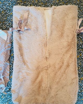 NO se vende por separado Lote compuesto por: - 1 saco para el carro de paseo de bebé en forma de conejo. Amarillo y blanco a lunares en exterior y blanco con puntitos negros al interior. Tiene ranuras para enganches o correas de la silla de paseo y poder atar a los niños. Casi nuevo (usado sólo dos veces... No hizo casi calor cuando debimos usarlo 😅🤷♀️) - Mantita de bebé de misma tela (tipo chándal gordita y super suave) amarilla y blanca a lunares. Usada pero bien conservada (pongo detalles del tejido y costuras...si necesitas más pídeme). Ambos sin manchas ni roturas ningunas.