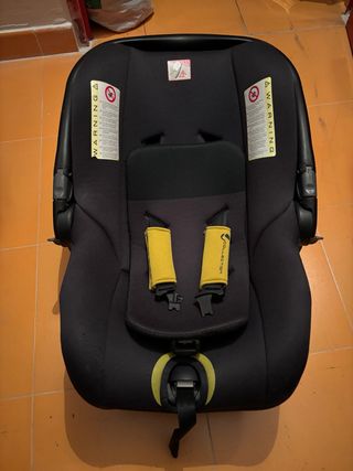 Silla para bebé en color negro con detalles en amarillo. - Para montar en chasis de carrito o en el coche - Incluye cinturones de seguridad con protectores. - Diseño acolchado para mayor comodidad.