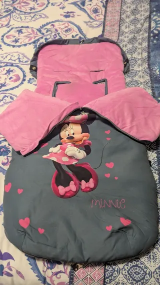 Saco para silla de paseo con diseño de Minnie Mouse. Ideal para mantener al bebé abrigado. En perfectas condiciones y recién lavado