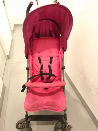 Silla de paseo en color rosa. - Capota amplia. - Arnés de seguridad. - Reposapiés.