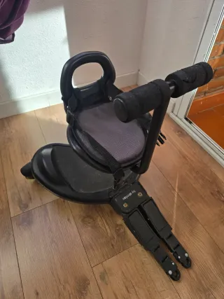 Accesorio para silla de paseo que permite al niño ir de pie. - Plataforma ancha y antideslizante. - Asiento acolchado y extraíble. - Manillar con agarres de espuma. - Ruedas resistentes.