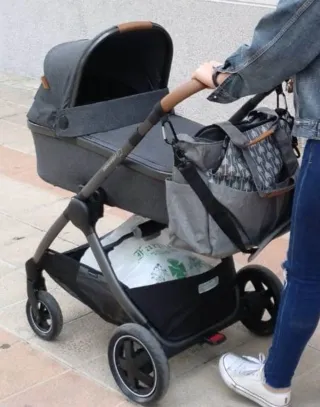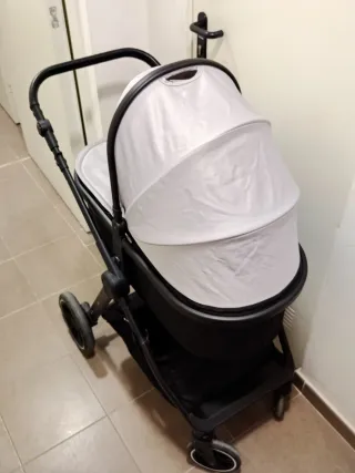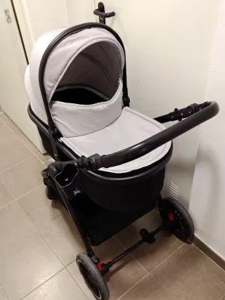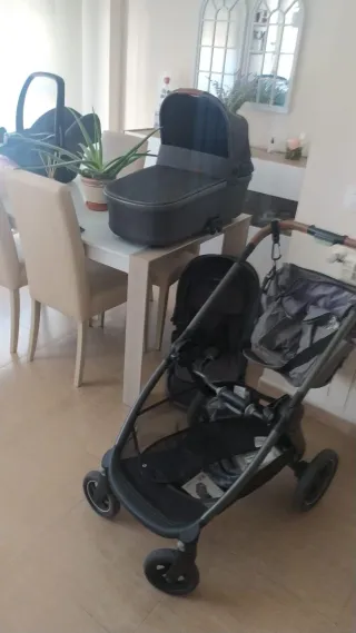 Carro de bebé completo en tres piezas, ideal para los primeros años del bebé. Su diseño combina funcionalidad y estilo. - Capazo espacioso y cómodo. - Maxicossi apta para el coche, agarre con cinturón. - Silla de paseo reversible. - Incluye bolso a juego. Uso de 4 meses, está todo nuevo.