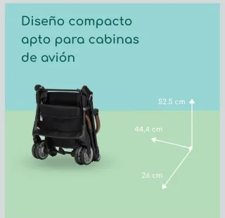 La Silla está equipada con tejidos de alta calidad, suaves y agradables al tacto. Sus dimensiones compactas y suspensión en las 4 ruedas. Su plegado tipo libro le permite ser homologada como equipaje de mano en aviones. Confortable, contiene un respaldo totalmente reclinable y una capota XL con protección solar UPF 50+. Incluye: -Burbuja de lluvia -Cesta porta objetos -Barra delantera Características: -Apta desde el nacimiento hastalos 15 kg. -Respaldo totalmente reclinable -Capota XL con protección solar UPF 50+ -Cesta porta objetos. -Dimensiones: 65 x 44 x 105 cm -Dimensiones plegada: 51 x 44 x 24 cm