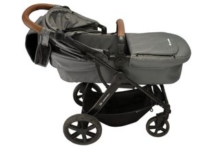 Carrito de bebé versátil en color gris, ideal para los primeros años. - Incluye capazo, silla de paseo y silla de coche. - Estructura robusta y plegable. - Capota extensible para mayor protección. - Manillar ajustable en altura. - Cesta de almacenamiento inferior.