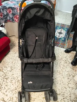 Silla de paseo marca Joie en color negro. Es compacta y fácil de manejar. - Asiento acolchado. - Capota. - Arnés de seguridad.