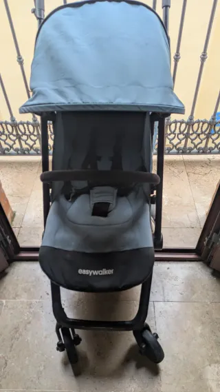 Sillita de paseo en color negro Easy Walker, edición Mini. - Capota con estampado geométrico. - Barra de seguridad. - Arnés de sujeción. - Incluido bolsa de viaje. - Muy poco uso.