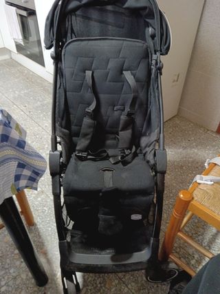 Carro de paseo Chicco Liteway en color negro. - Estructura ligera y plegable. - Asiento acolchado. - Capota. - Arnés de seguridad. - Funda para lluvia