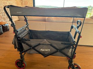Carrito Fuxtec plegable, ideal para niños, transportar objetos, playa, salidas en parques tematicos, etc... - Estructura de metal resistente. - Tejido de poliéster. - Capota para proteger del sol. - cinturon para bebe - plastico para la lluvia - colchoneta inchable para mayor comodidad