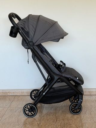 Silla de paseo plegable de la marca Jane. Es ligera y fácil de transportar. - Asiento acolchado. - Arnés de seguridad de 5 puntos. - Ruedas delanteras giratorias. - Empuñaduras ergonómicas.