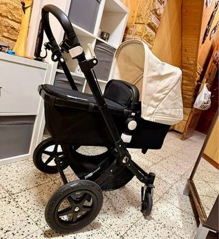 Carrito de bebé marca bugaboo cameleon 3, de color negro y beige. Esta completamente nuevo. No tiene ni 10 meses de compra. - Chasis plateado. - Capazo y silla. - 2 Capotas extensibles, una beige y la otra rosa, . - Cesta inferior grande. - Ruedas todoterreno. - Sistema de plegado fácil