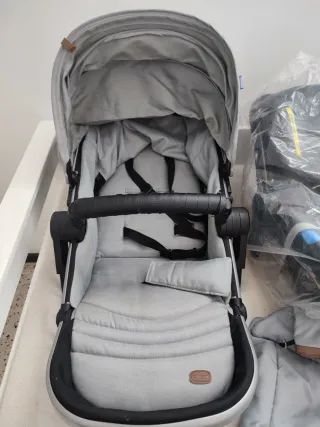 Kinderkraft MOOV Carrito bebé 3 Piezas, gris clarito, como nuevo, muy poco uso, es muy cómodo para el bebé, fácil de limpiar y de transportar, es plegable, compacto y reclinable, es hasta 22 kg Incluye: Capazo que se convierte en Silla de Paseo, Sistema de viaje, Silla coche, con bolso y accesorios sin estrenar, capota extensible y protector solar, forro para el frío, protector de lluvia, ruedas todo terreno...